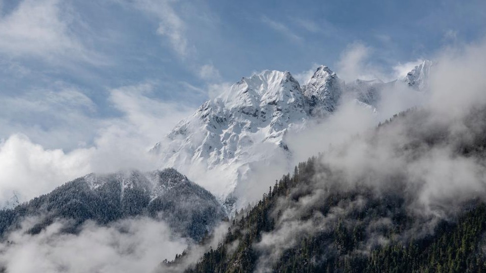 堆瓦村一角(5月1日摄,手机照片)。 堆瓦村位于西藏山南市浪卡子县,坐落在蒙达岗日雪山脚下、普莫雍错湖畔,海拔5070米,自然风光美不胜收。 新华社记者 沈虹冰 摄 从堆瓦村远眺雪山美景(5月1日摄,