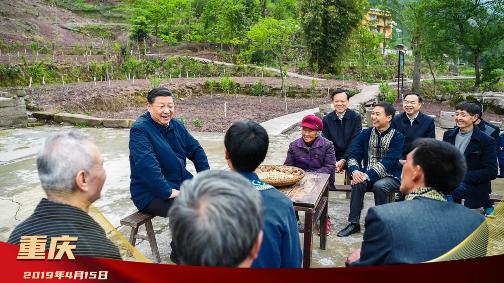 2019年4月15日,习近平在重庆市石柱土家族自治县中益乡华溪村村民、老党员马培清家中,同村民代表、扶贫干部围坐院中,共话脱贫攻坚。习近平对乡亲们说,脱贫攻坚是我心里最牵挂的一件大事。这次我专程来看望乡亲们,就是想实地了解“两不愁三保障”是不是真落地,还有哪些问题。