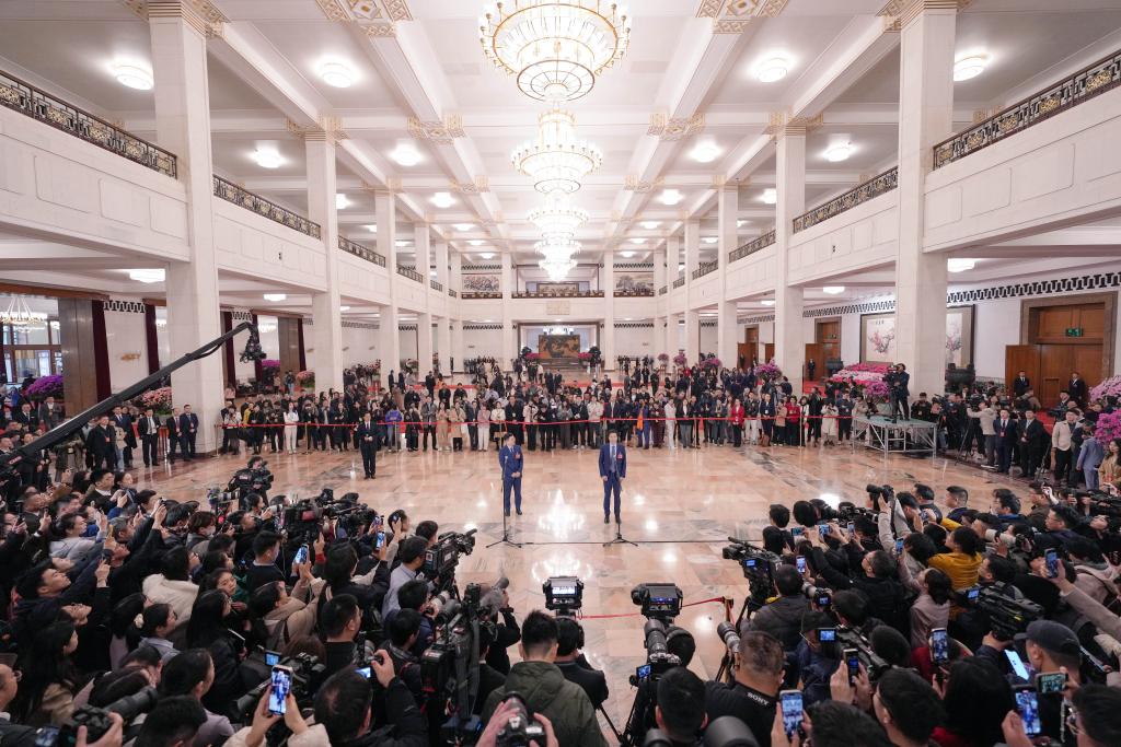 3月5日,第十四届全国人民代表大会第三次会议首场“代表通道”集中采访活动在北京人民大会堂举行。新华社记者 郑焕松 摄